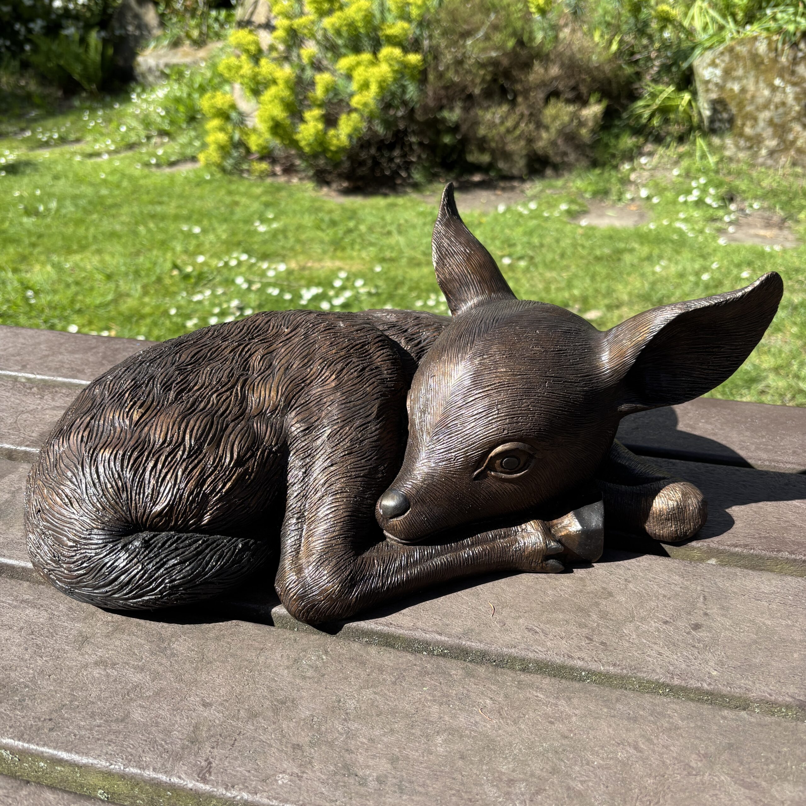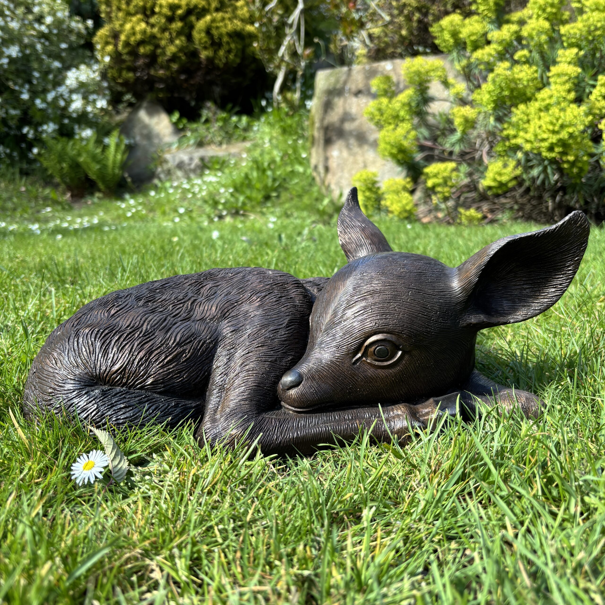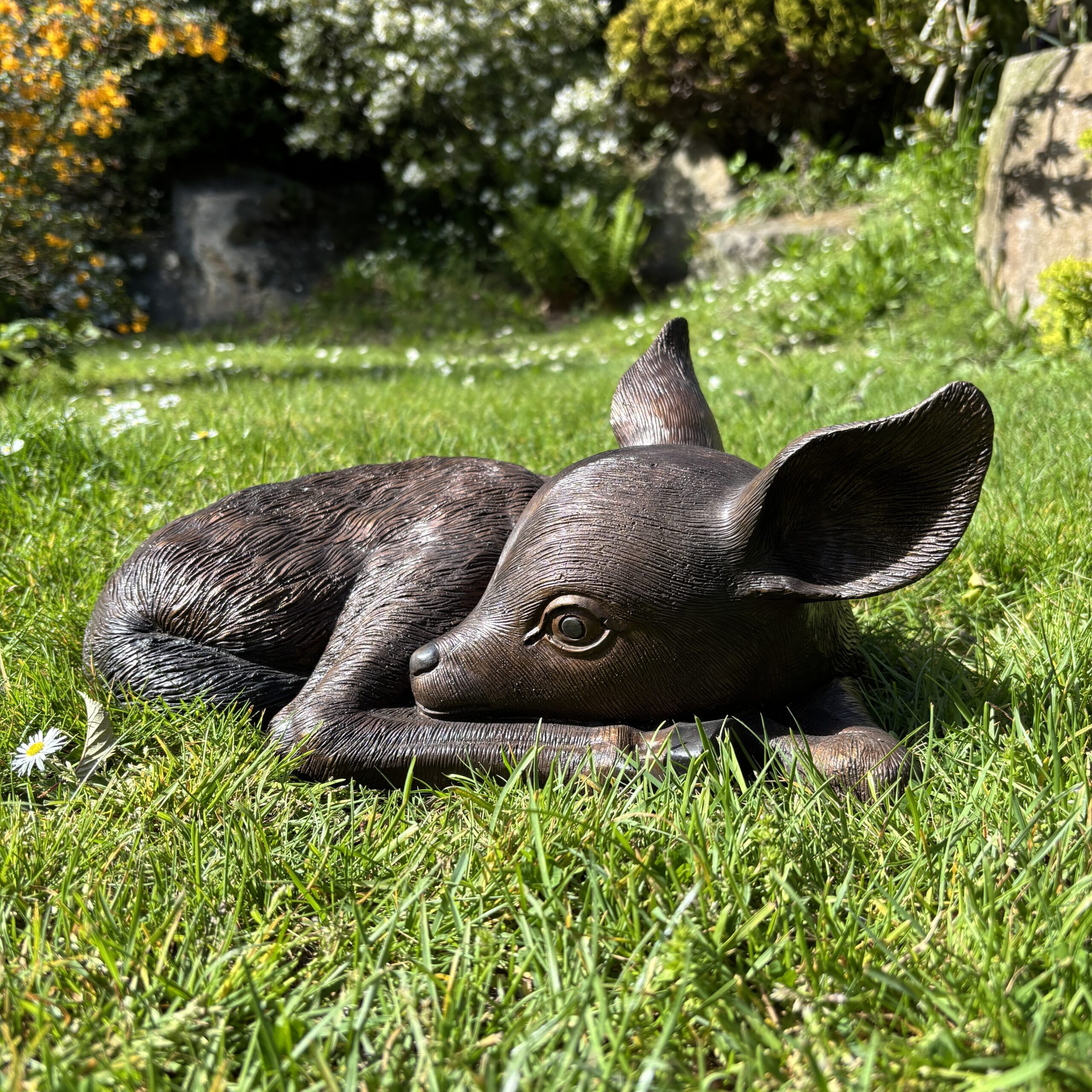 Its small size makes it ideal for rockeries, borders, or tucked quietly among planting. It also looks lovely placed near larger deer sculptures, where it adds a sense of family and natural storytelling.