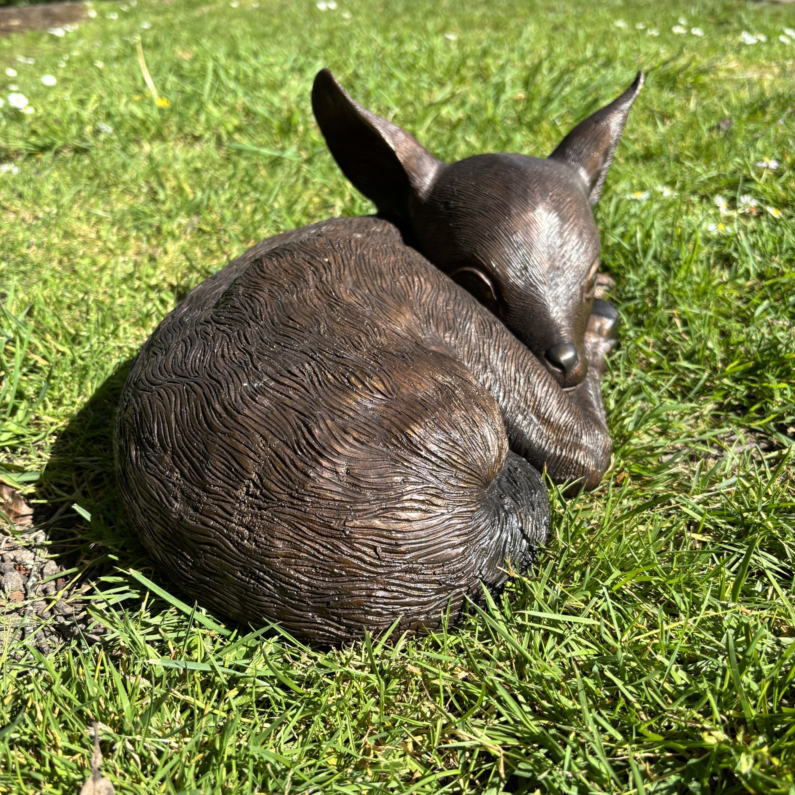 Bambi Sleeping Deer Fawn Bronze Baby Animal Art Sculpture