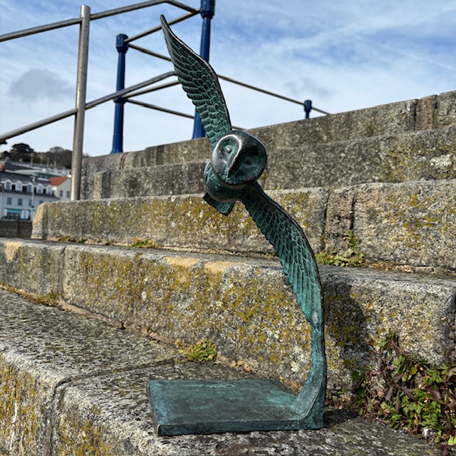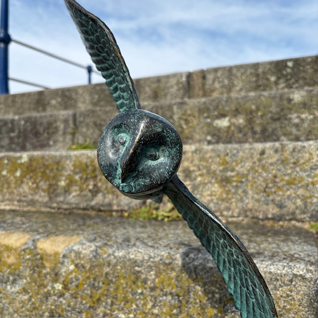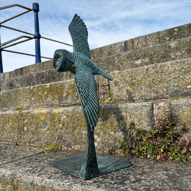 This Bronze Barn Owl Sculpture Wingspread captures the quiet movement of a barn owl in flight.