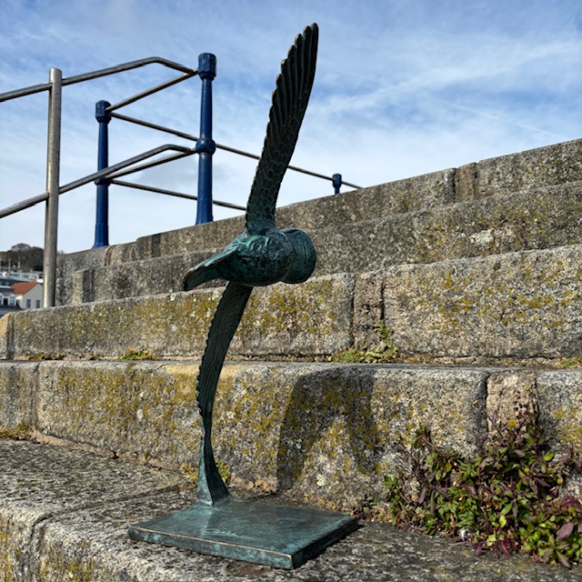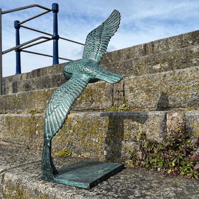 It works well on a pedestal, low wall, or flat surface in the garden. However, it is equally effective indoors. Try it on a console table, side table, or in an alcove where the wingspan can be appreciated.