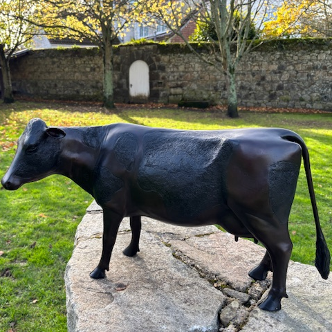 Bronze Dairy Cow Farmyard Animal Sculpture a perfect gift for a cattle breeder, farmer. For example an amazing trophy at a country or county agricultural show in the cattle section. For instance the very fine detail and an outstanding specimen that will be loved by everyone. This would make an ideal interior ornament for any farmhouse.