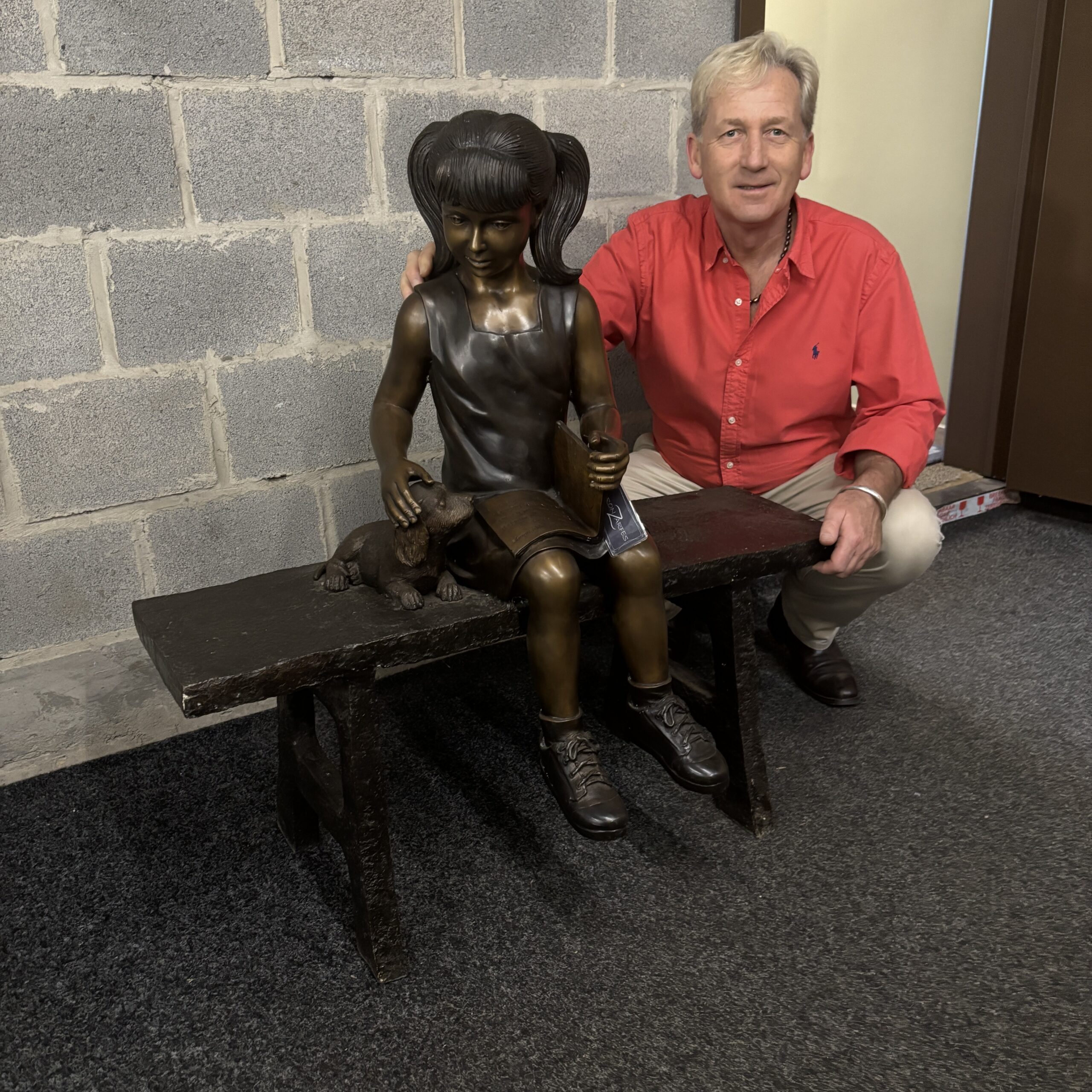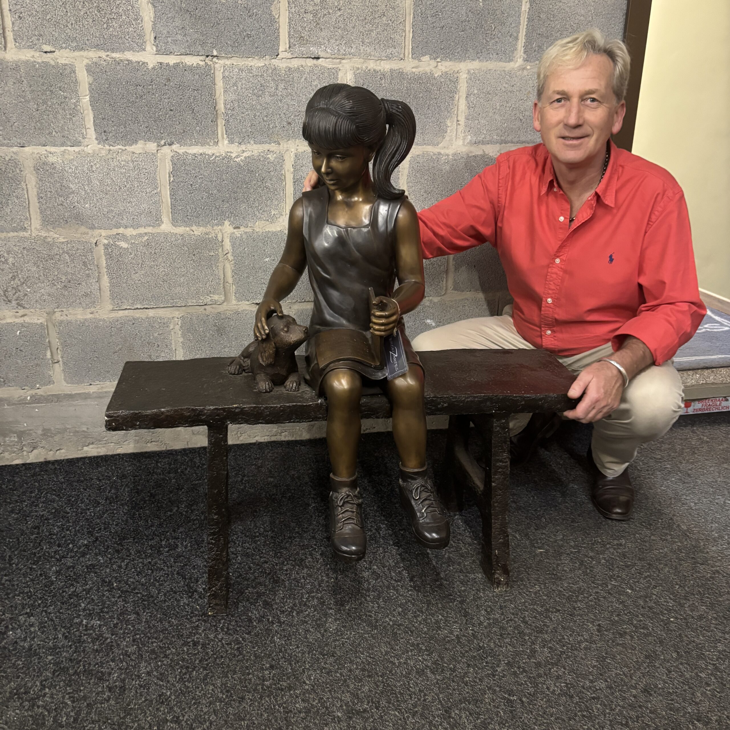 This Fine Cast Solid Bronze Ponytail Girl Sitting on Bench With Puppy Dog Sculpture would make a lovely feature in your garden. For example she is made with character, quality and fine detail. This would also be a great gift for someone on a special occasion. This figure will last you a lifetime living in your orchard, garden or on a patio. In addition she could by along a gravel pathway.