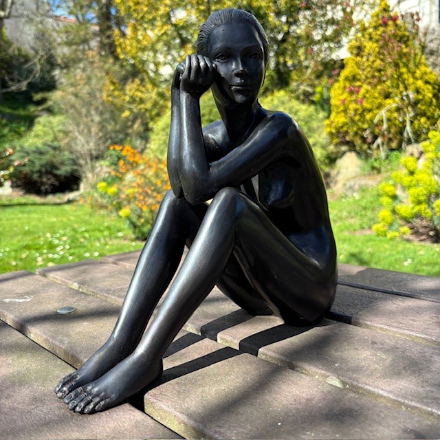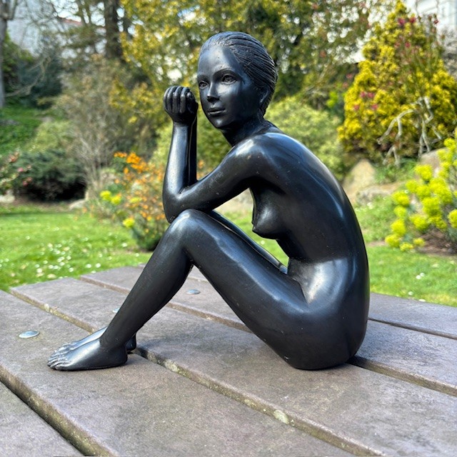 Bronze Seated Female Nude Sculpture Contemplation