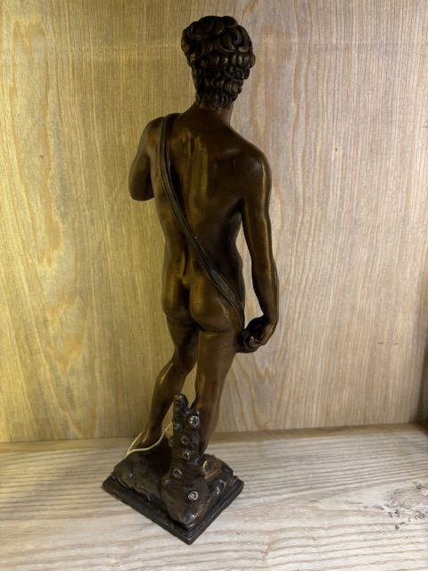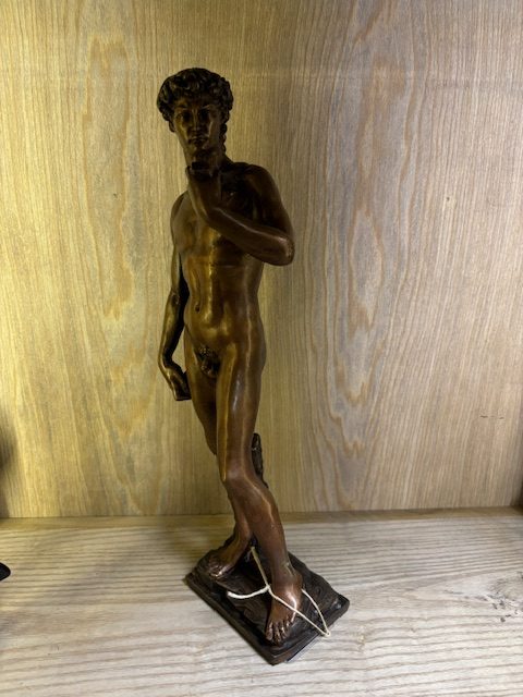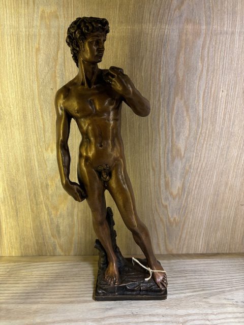 This David By Michelangelo Nude Male Bronze Sculpture 40cm is a stunning piece that in fact could be placed inside your home. Michelangelo’s David is currently in the Accademia Gallery in Florence. Michelangelo’s David is one of the most representative works of the Italian Renaissance. In addition, it is one of the most famous sculptures in the world. Michelangelo regarded a single block of stone as containing all the possible conceptions for a work of art, and believed that the artist’s task is sculpting the marble block to reveal the ideal form within, the massive block of white marble that was to become the David.