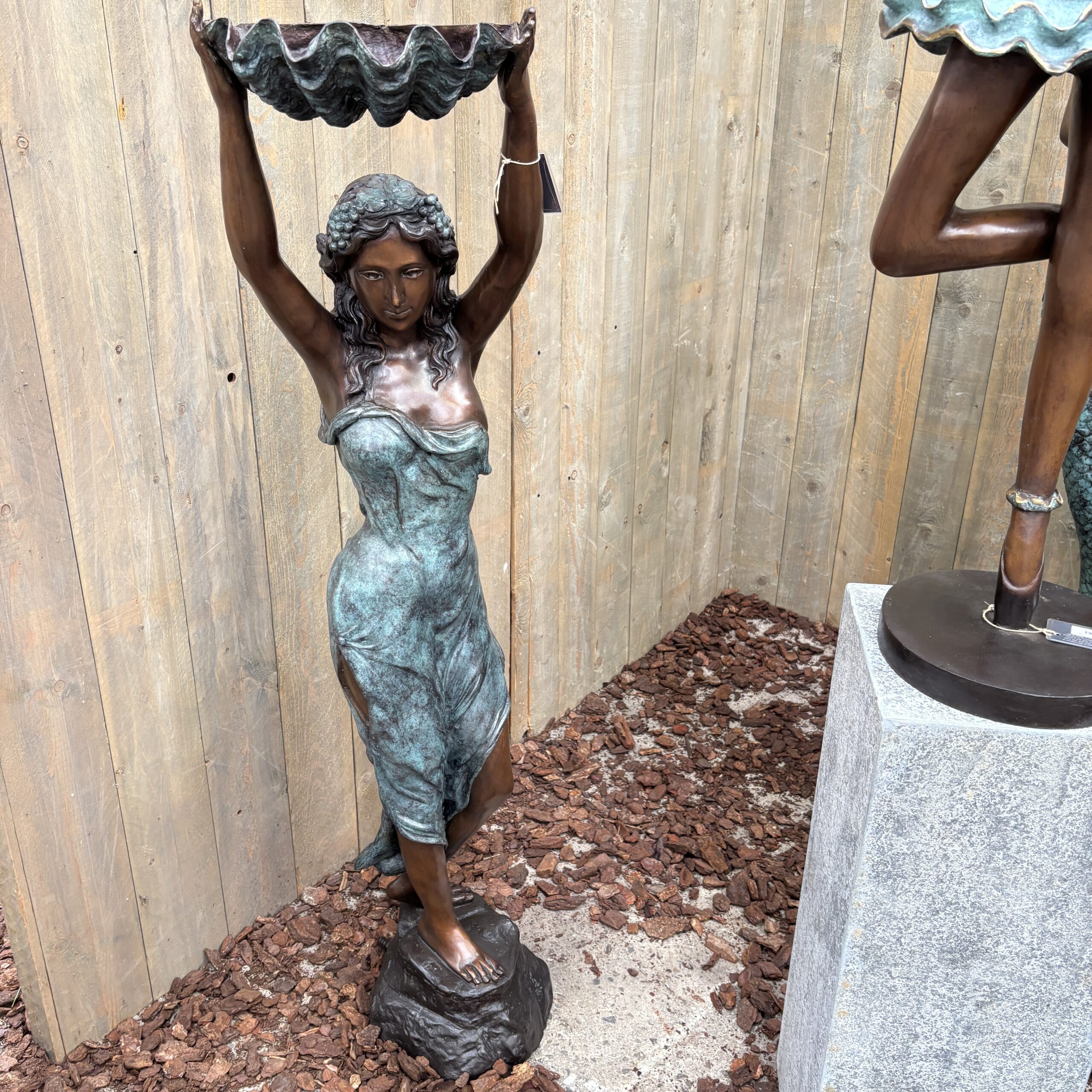 Elegant Lady Holding Shell Fountain Water Feature Bronze Sculpture FO112