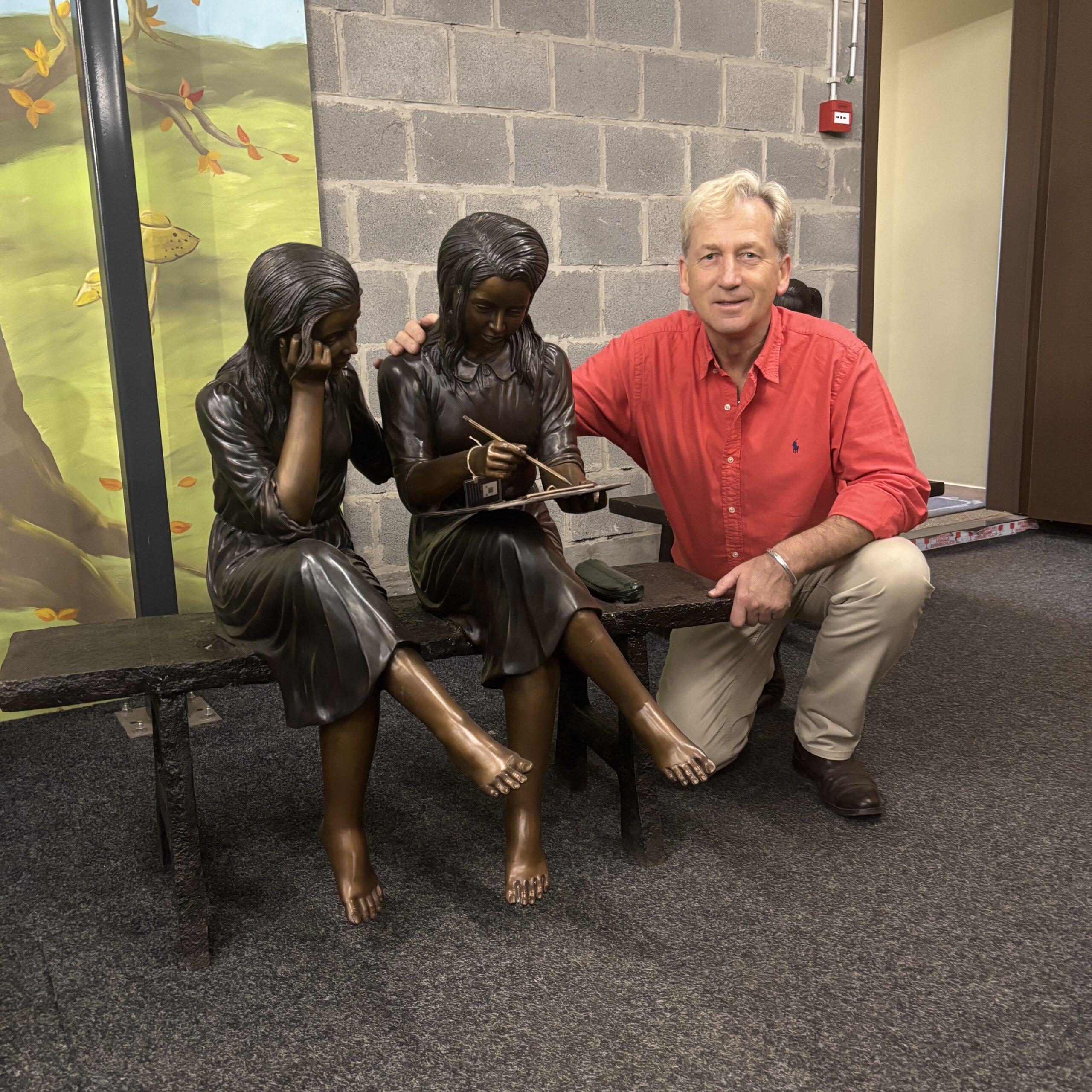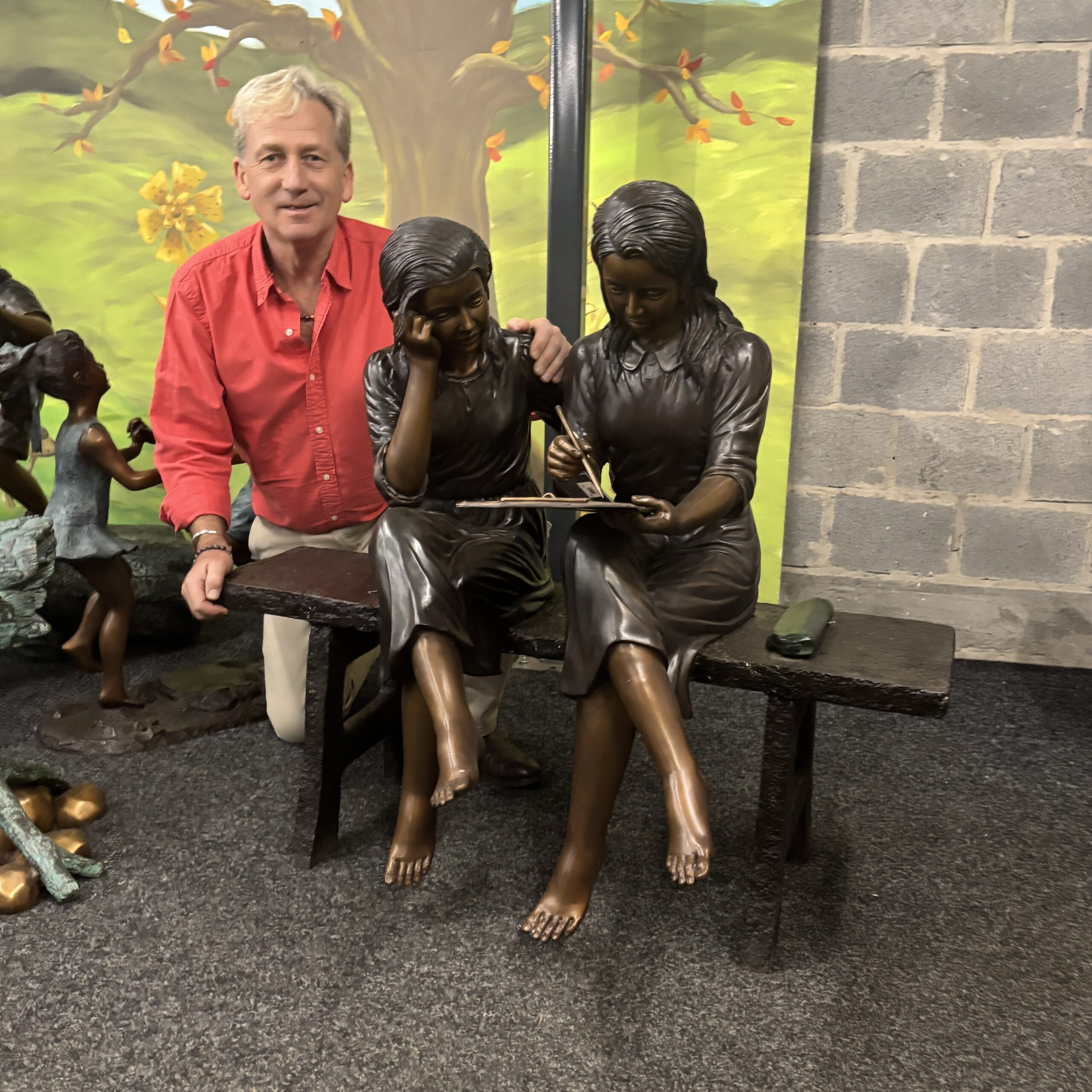 The girls reading bronze sculpture is a beautifully detailed children on bench artwork. It depicts two girls quietly reading together, creating a calm and thoughtful scene. As a result, the sculpture feels gentle, timeless, and full of character.