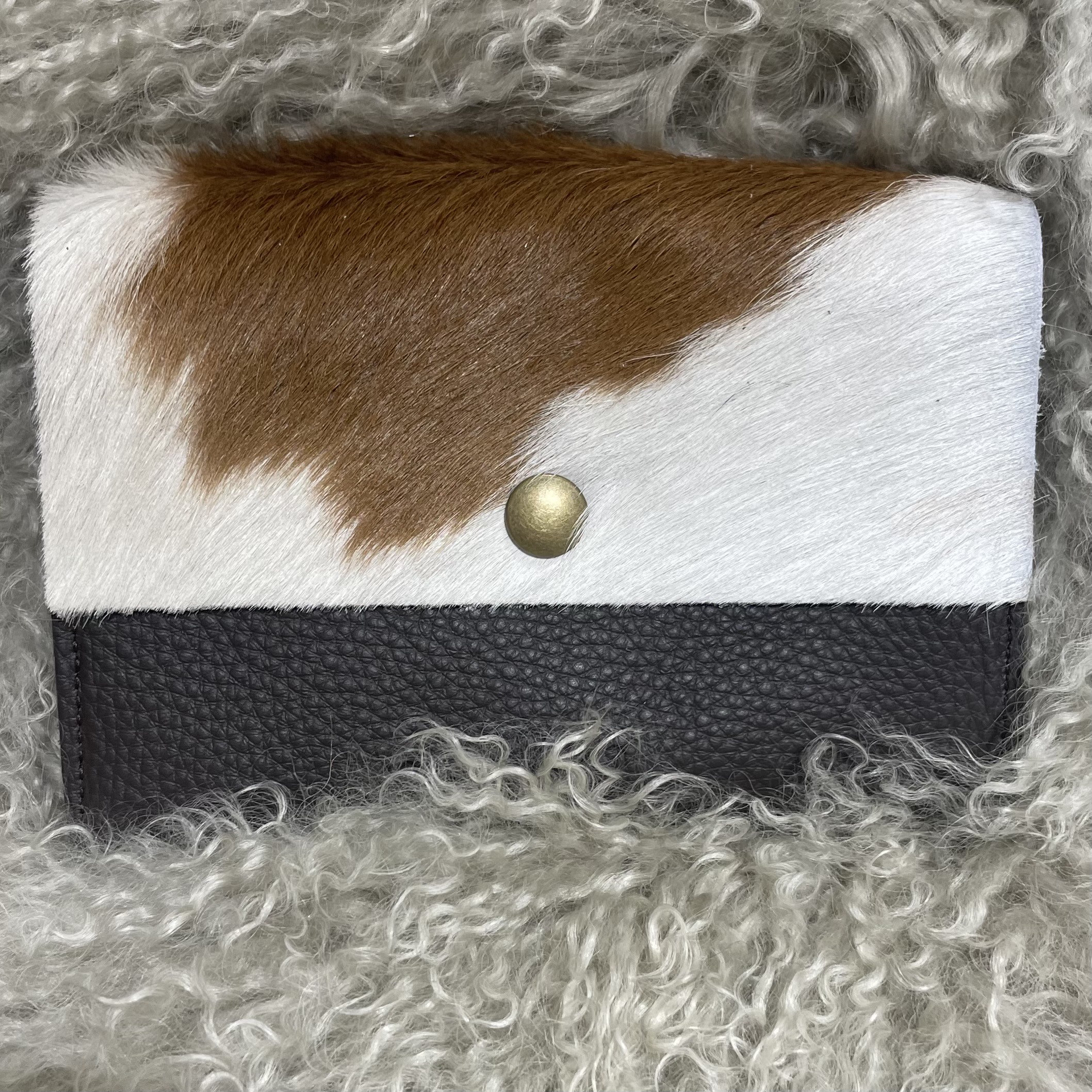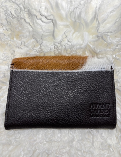 Cowhide Purse Small Golden Guernsey Cow Tan & White By Guernsey Treasures. Make a bold yet practical statement with the Guernsey Cowhide Purse. Crafted from genuine cowhide, it offers generous width and a natural texture that deliver strength, comfort, and rustic charm.