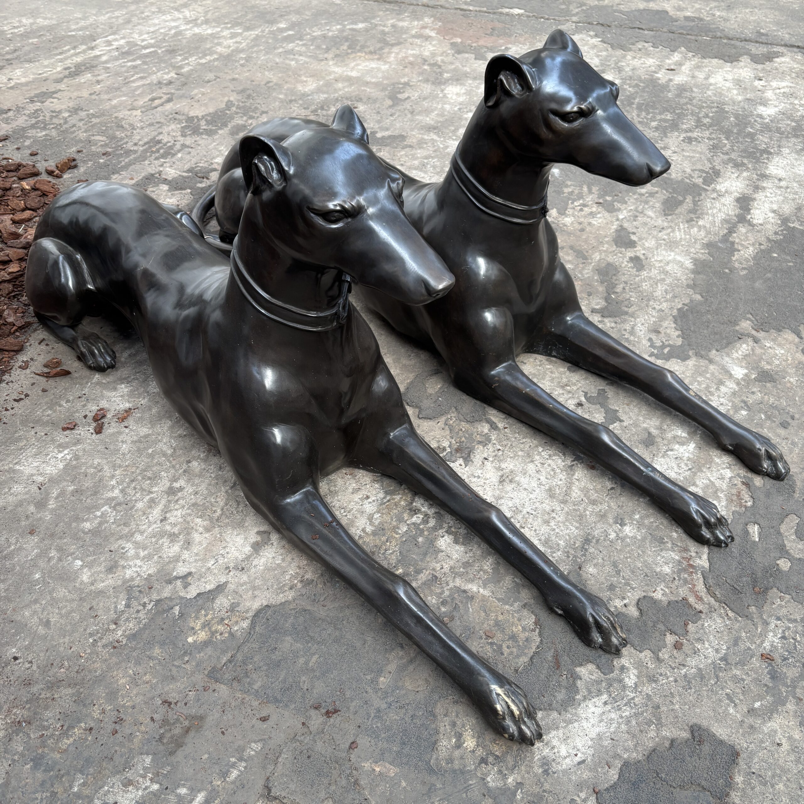 This pair of dogs will also last forever as they come with a corrosion free guarantee. Bronze never rusts or decays. They can remain on your property where ever the location forever and will become part of the family.