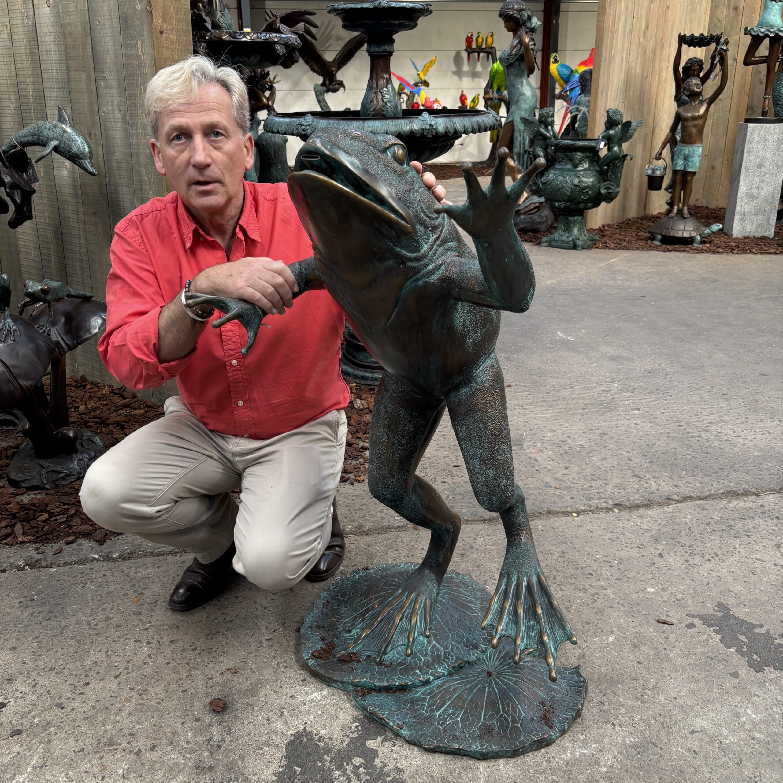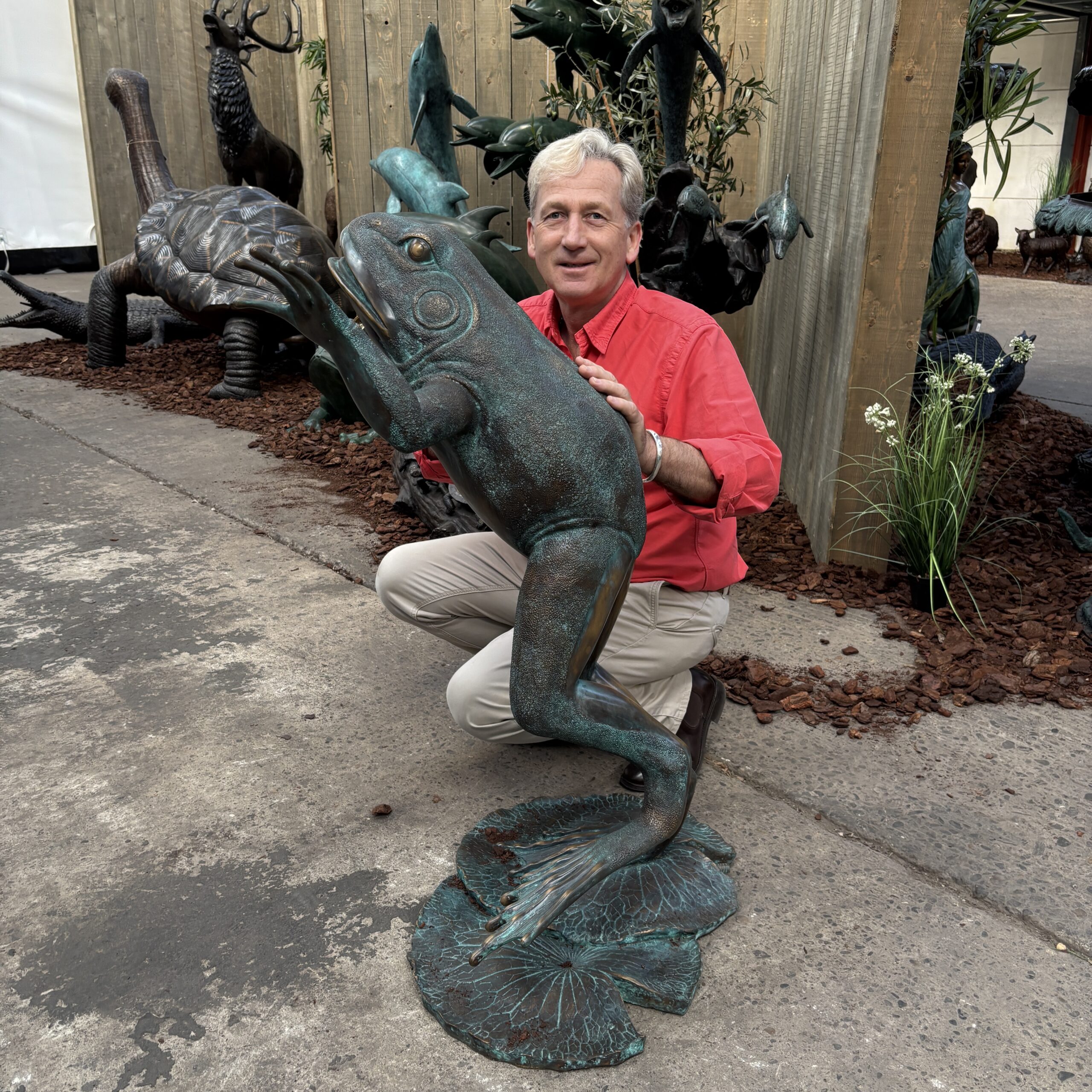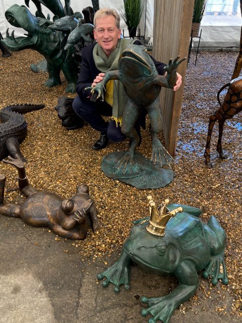Standing upright on powerful back legs, the frog creates a strong vertical presence. As a result, it works particularly well as a focal point near water, planting, or hard landscaping.