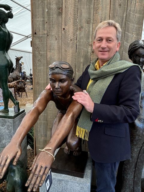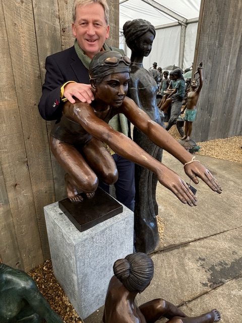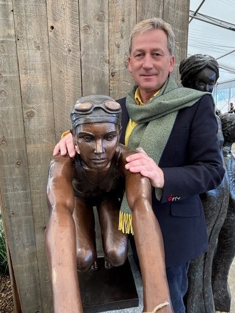 Rather than idealised drama, the sculpture reflects real preparation and commitment, making it deeply relatable to those who see swimming as a lifestyle.
