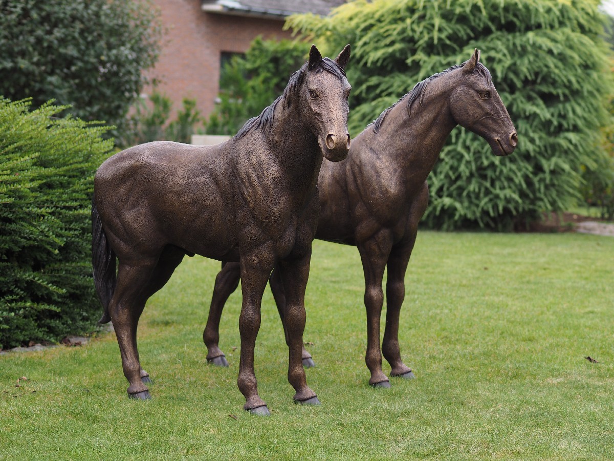 This Le Deux Cheval Pure Bronze Horses Animal Art Sculpture Pair is natural in every way and could stand out to pasture. This in fact would be a great edition to any garden or grounds of a country equine estate. They have actually featured in Country Life Equestrian edition. For example they are intricately crafted to look flawless in all aspects this pair is truly beautiful.