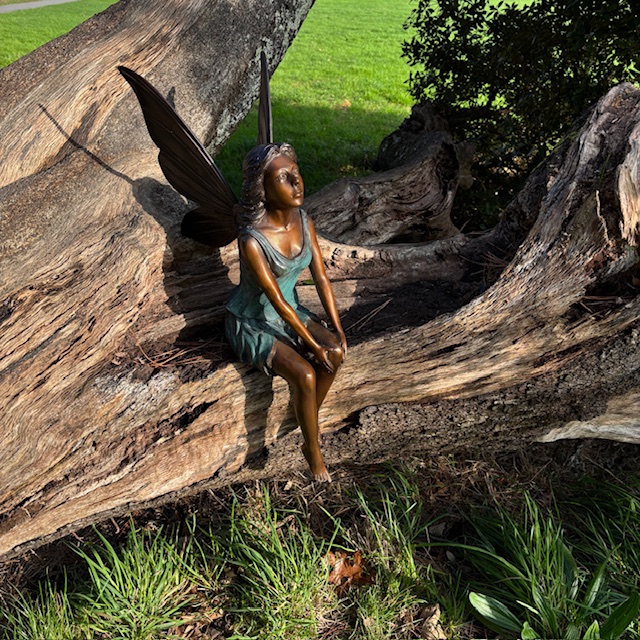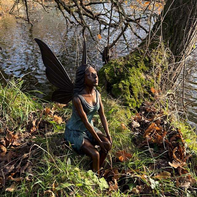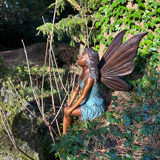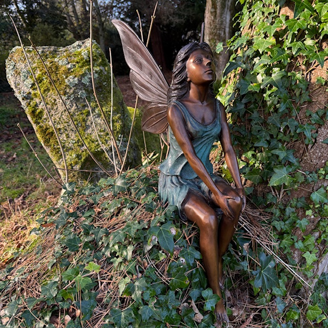 This fairy has been created to feel peaceful and reflective. Her relaxed posture allows her to blend into the garden rather than stand apart from it.