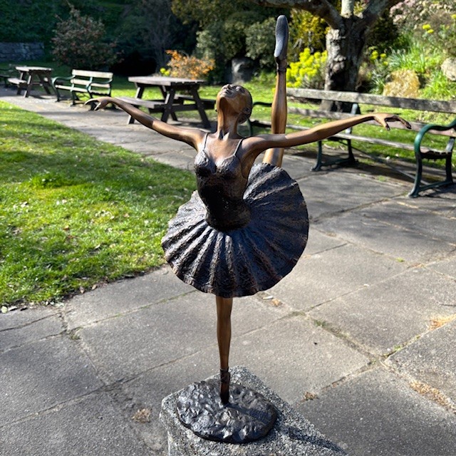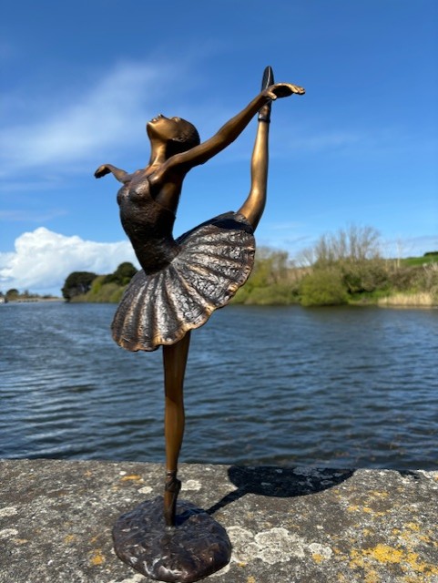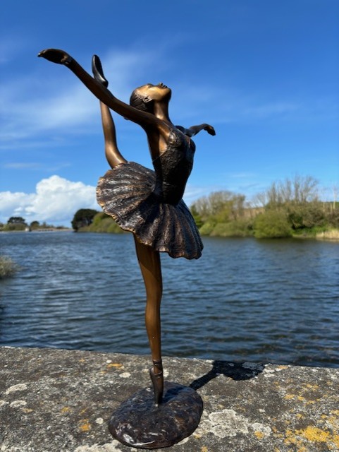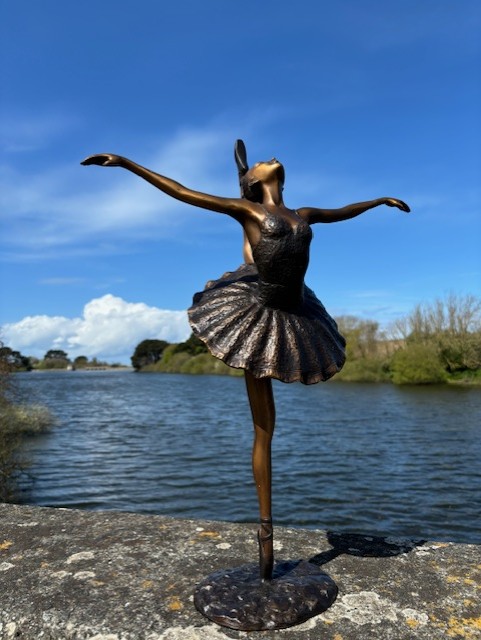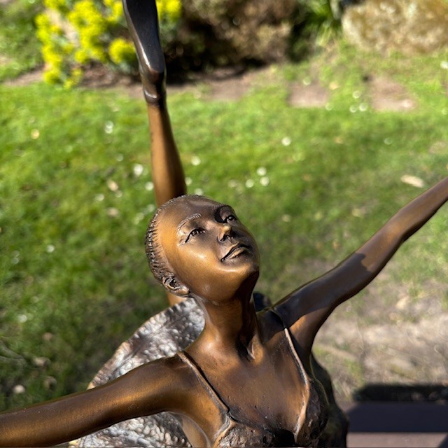 The contrast between the smooth bronze finish and the flowing detail of the tutu adds visual interest. As light moves across the surface, the figure gains depth and definition, enhancing the sense of movement.