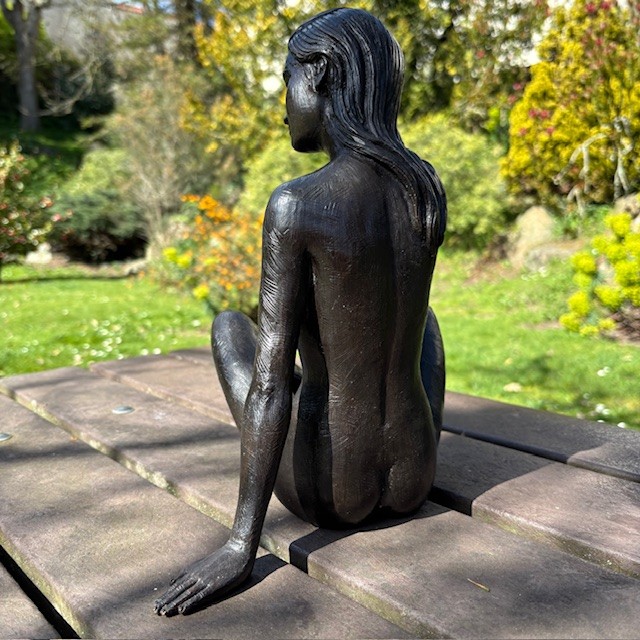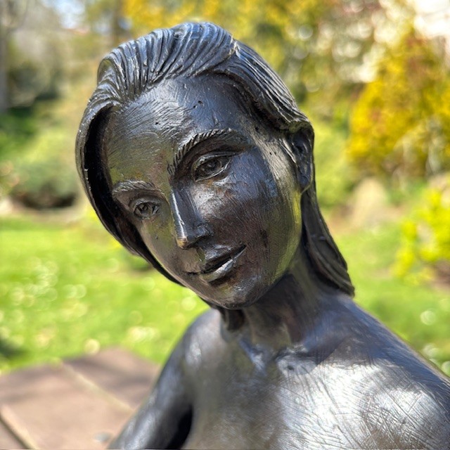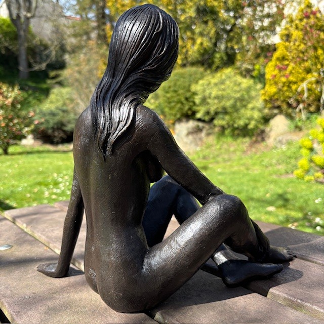 The bronze finish adds warmth and depth, while the smooth lines of the figure create a soft silhouette. In fact when light moves across the sculpture, the surface detail becomes more visible, giving the piece life and character throughout the day.