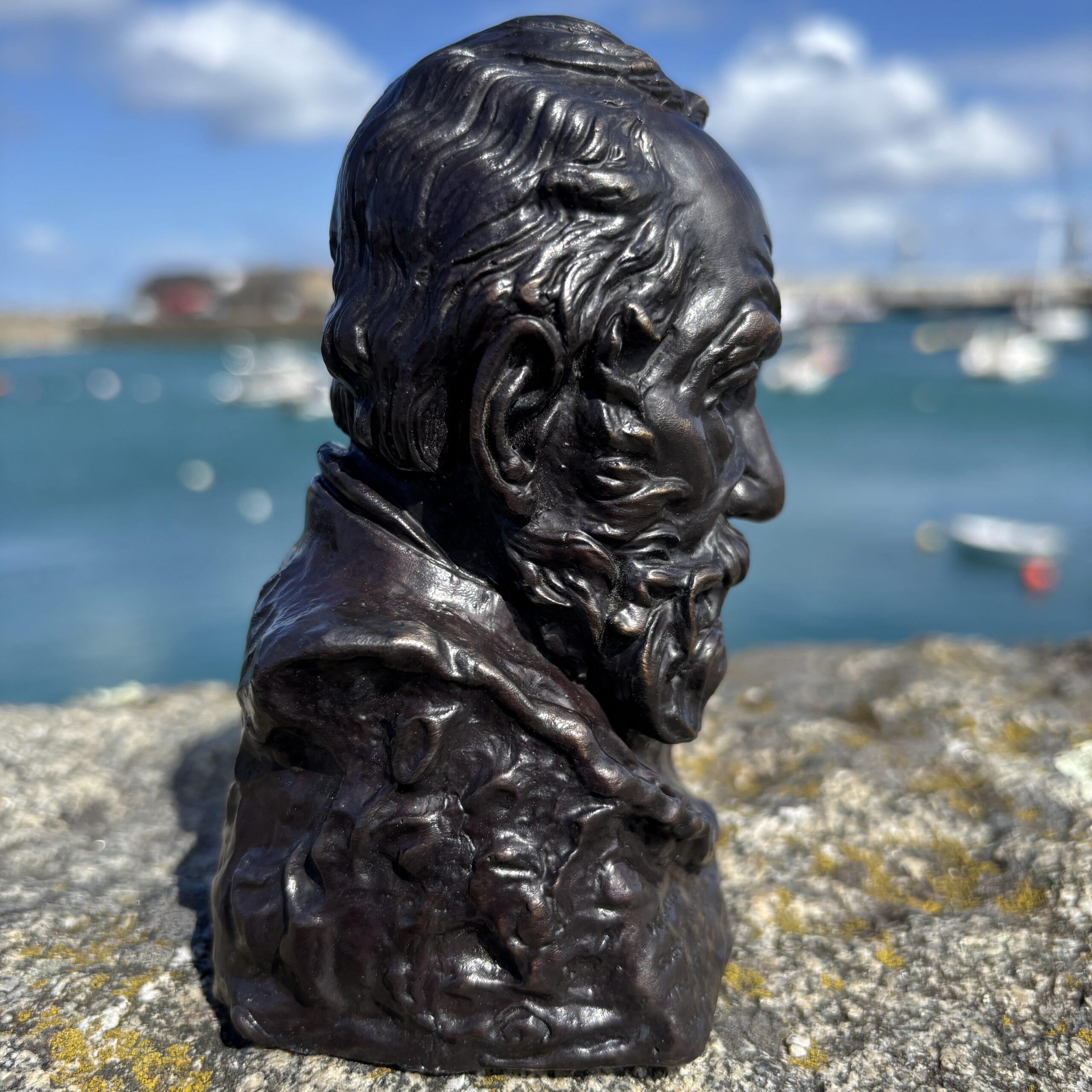 Small Victor Hugo Bronze Sculpture – ‘The Rock Of Hospitality And Freedom’. A compact bronze bust of Victor Hugo, inspired by his years in exile on Guernsey. Where he described the island as “The Rock Of Hospitality And Freedom”