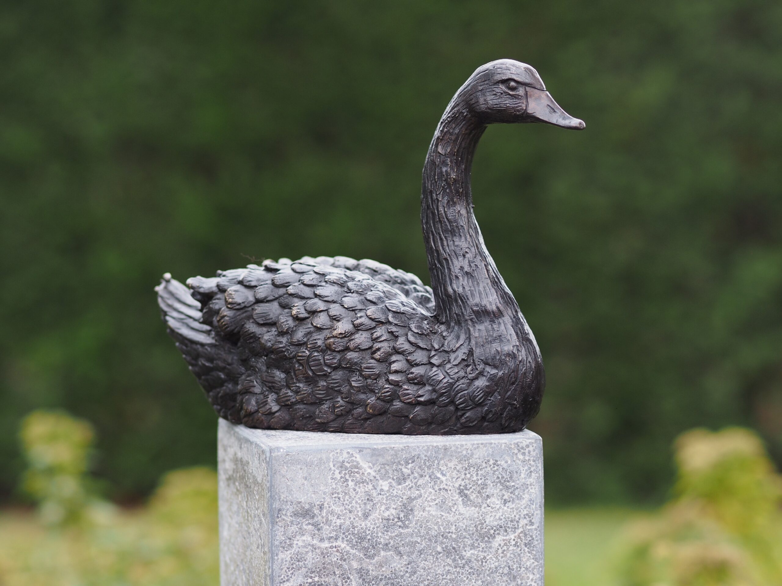 This swan also works very well when displayed with the smaller swan sculptures, creating a family group. Placing the smaller swans nearby helps create a more interesting and natural display, especially beside water or among planting.