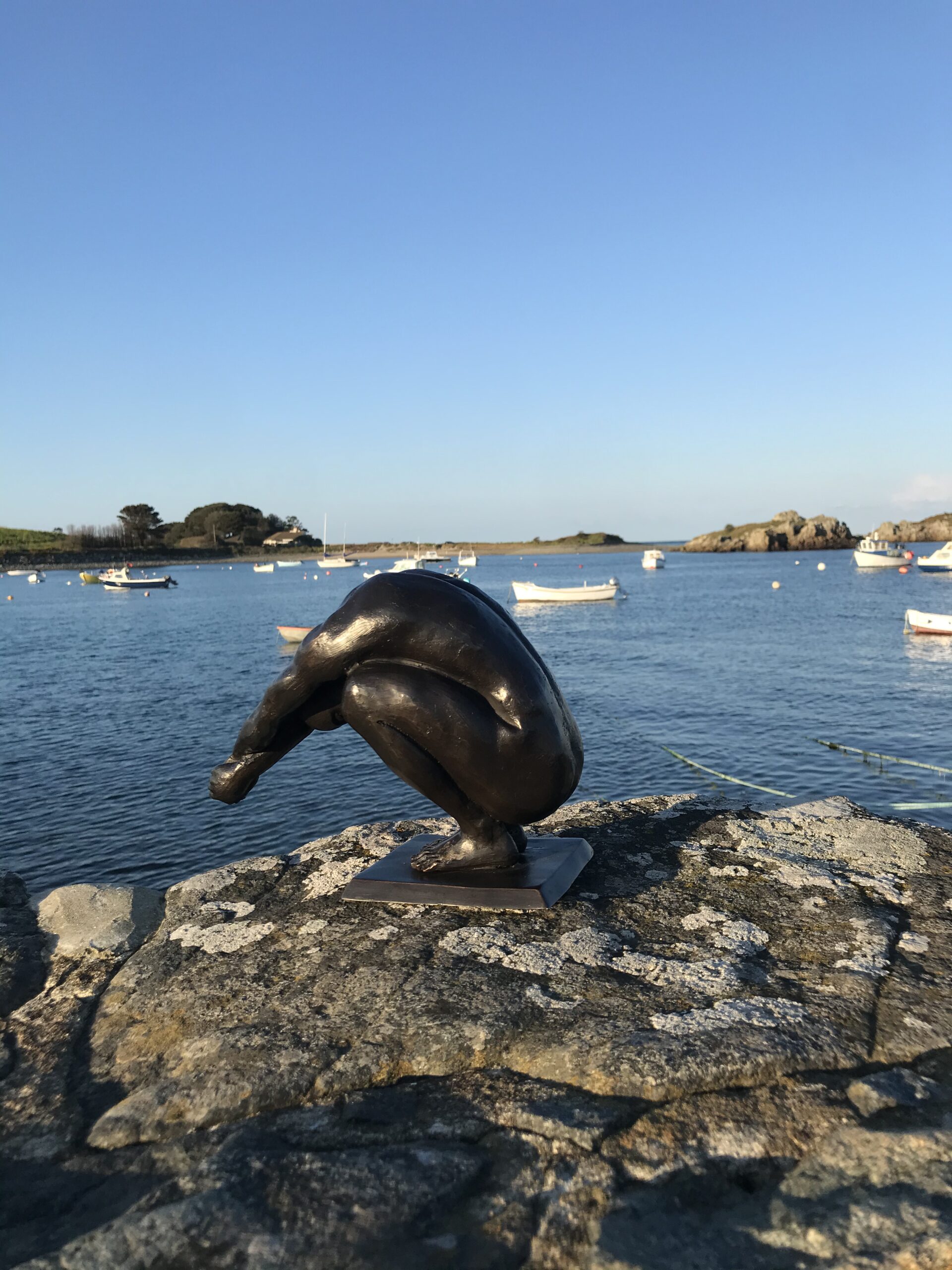 he Swimming Sports Diving Man Bronze Male Nude Sculpture captures an athlete diving gracefully. It makes a perfect trophy or commemorative gift for swimmers or divers. Additionally, this tactile sculpture with a strong physique suits any setting, indoors or outdoors. Moreover, it lasts forever, backed by a corrosion-free guarantee since bronze never rusts or decays. Furthermore, we offer durable Chinese Limestone Pedestals, ideal for indoor or outdoor use. These pedestals are hollow yet thick and can be drilled to securely bolt the sculpture in place.