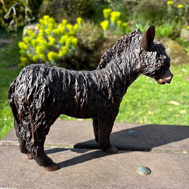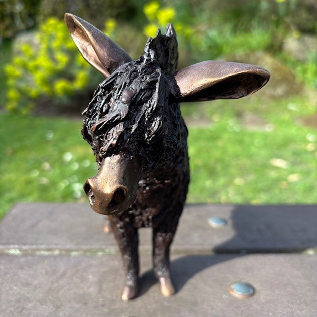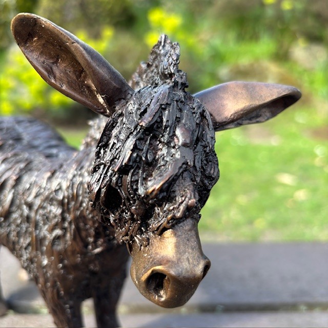 This delightful woolly donkey bronze sculpture captures the character and gentle charm of this much-loved animal. The textured modelling suggests the soft, shaggy coat typical of hardy donkeys. In fact one wonky ear and calm stance give the piece a quietly expressive presence. Compact in scale, it works beautifully within interiors or a planted border. In addition a courtyard garden, or terrace display where small sculptural details can be appreciated. The warm bronze tones allow it to sit naturally among planting and stone, offering a subtle yet characterful garden accent.