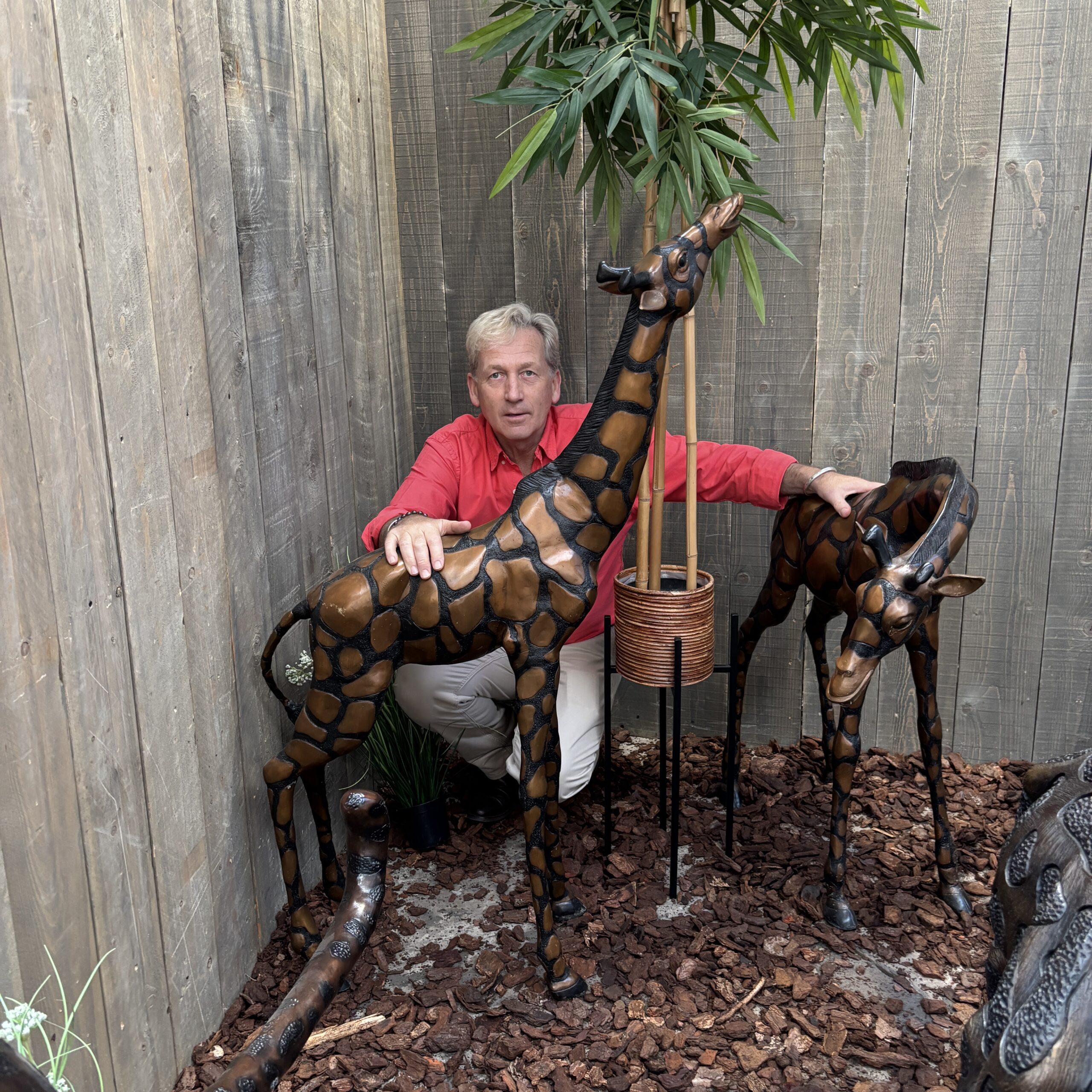 Young Giraffe Pair Grazing Wild Bonze Animal Sculpture would make a great edition to any exterior area as its made with fine detail. They would complete a large garden with their elegance. This exotic Bronze Giraffe Pair would be perfect in a woodland or botanical garden showing their beautiful elegance and grace. It is going to be a major talking point and fabulous for a photo opportunity.